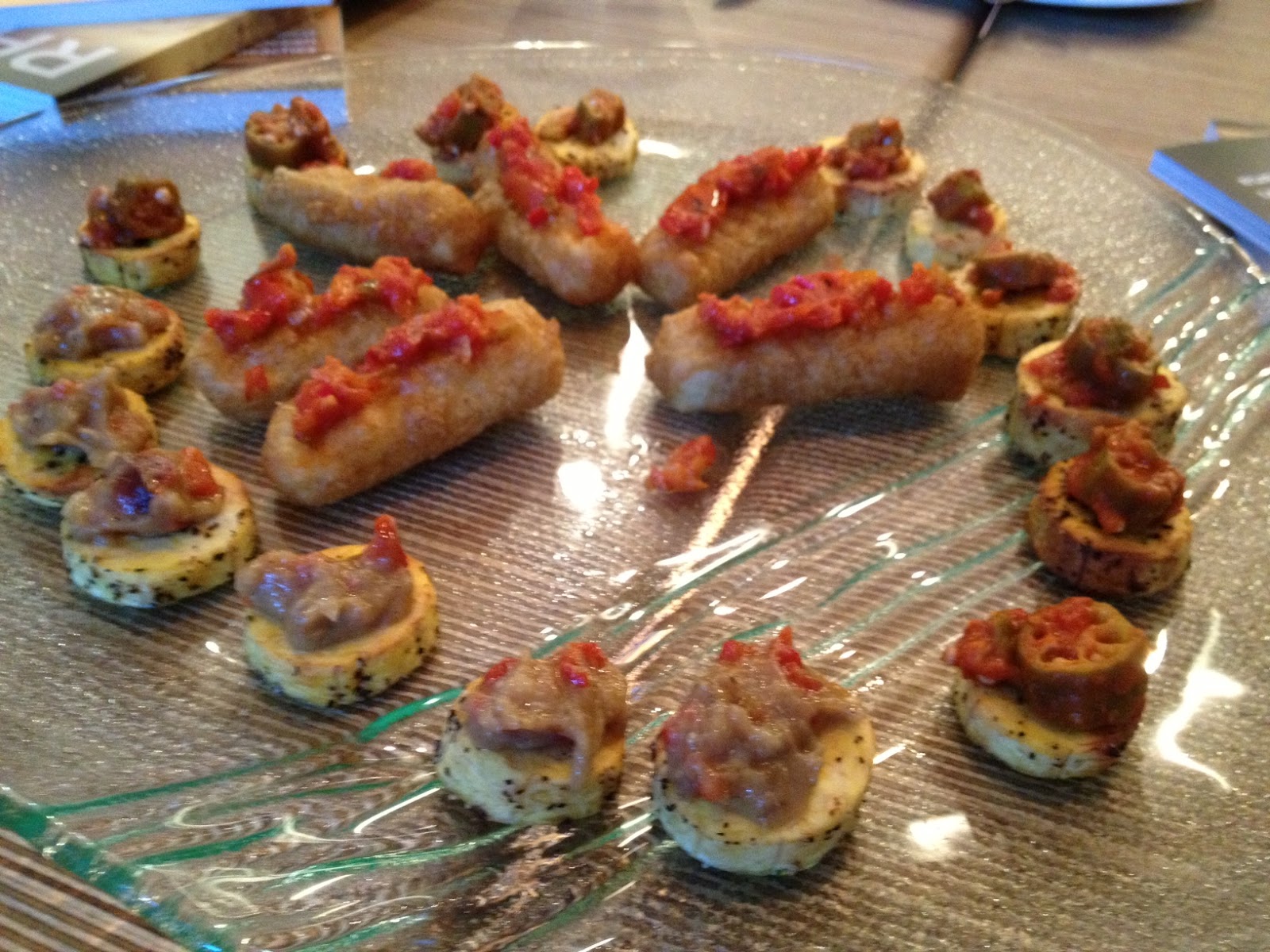 The evening started with some very interesting African canapes of fish, cassava, greens, plantain among other nibbles: