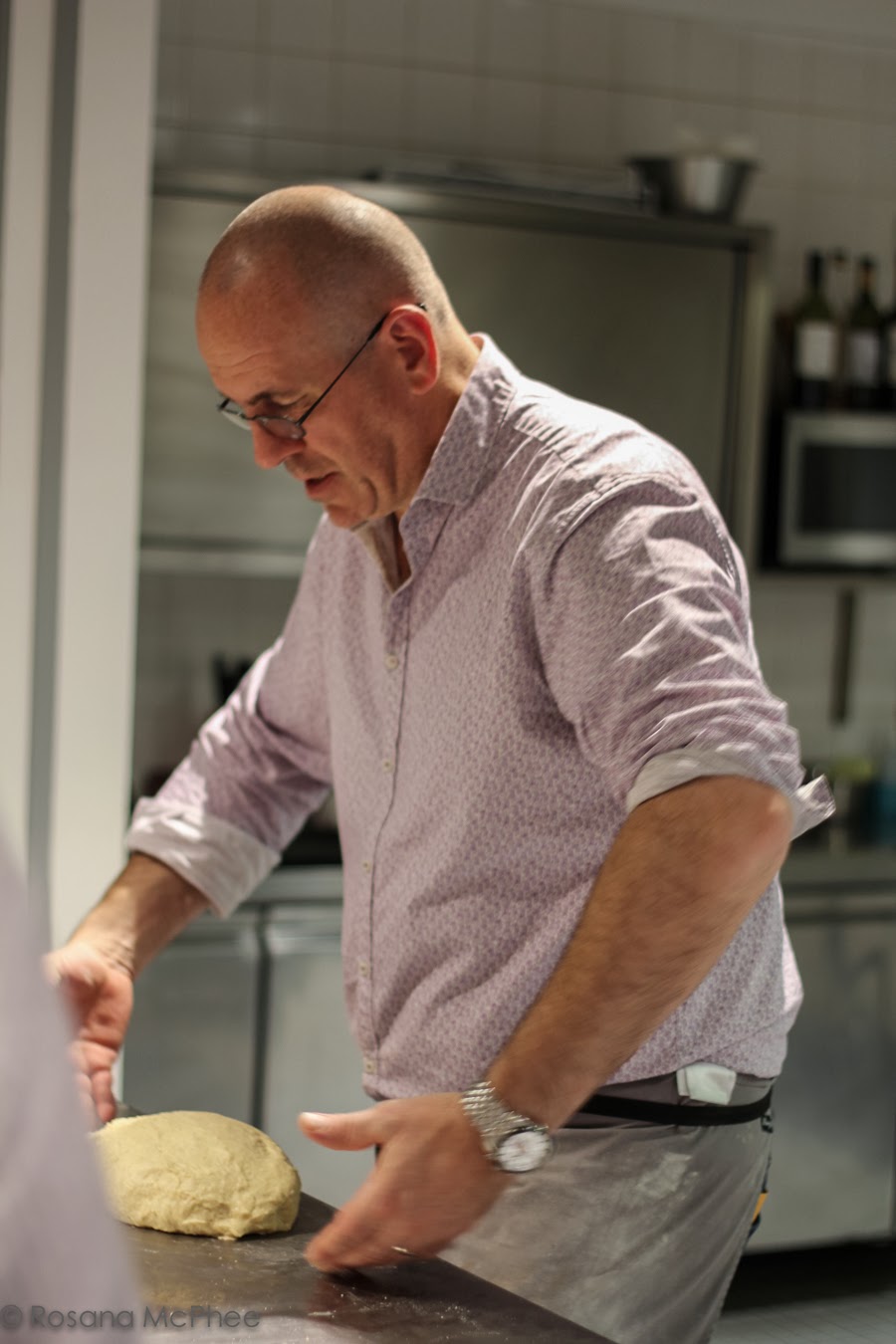 Richard demonstrated his unique method of kneading and incorporating air into his dough