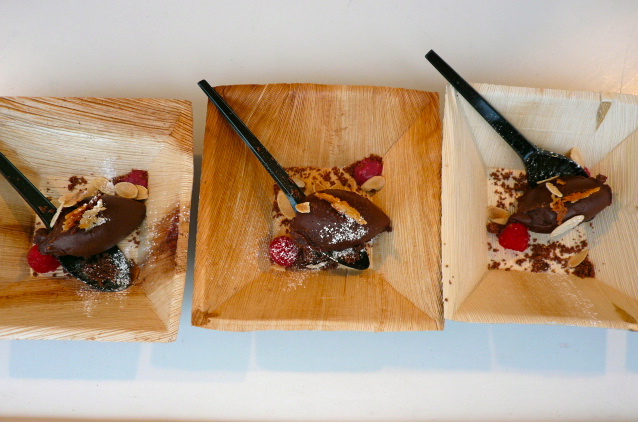 Dark Chocolate Cremoso with Fresh English Raspberries, Coconut & Toasted Almonds by Vinoteca