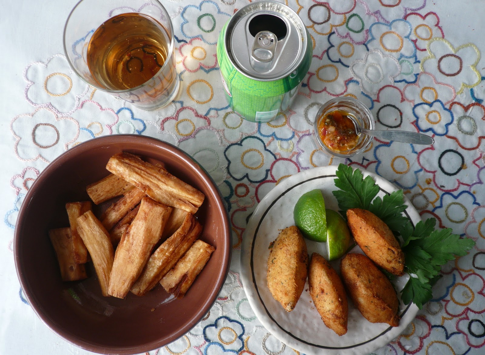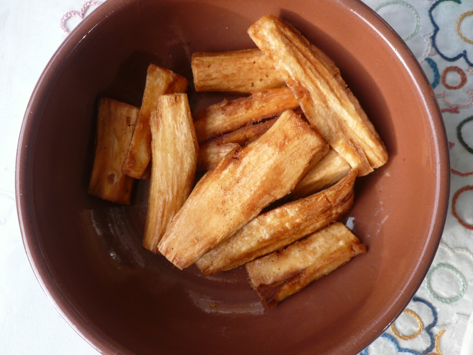 This recipe is very easy: take the skin off , cut in quarters length ways, boil till tender in salted water, drain and deep fry. Sprinkle with salt. Serve immediately.