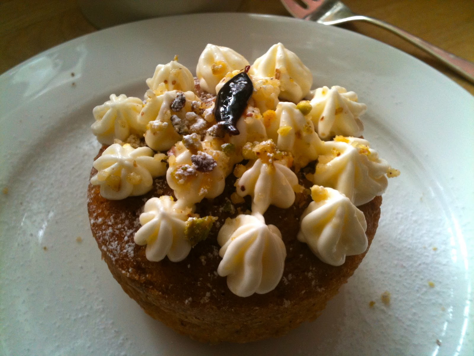 The spazzy star decorations were created by putting the maple cream cheese frosting into a piping bag fitted with a large star tip and dolloping away. An extra layer of dollops were piped nearer to the center, to create a domed effect.