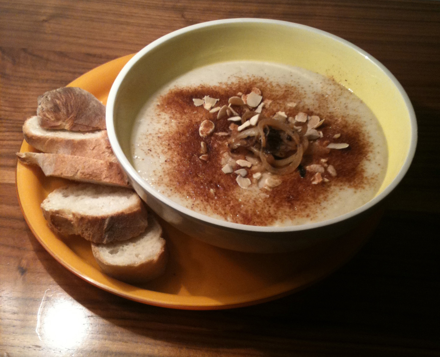 That is how it works: the dates and ingredients are on Rachel’s website (link above). About a week before she reminds all her Twitter followers the time and date of the event. The same happens the day before and on the day. January’s cookalong was cream of cauliflower soup.