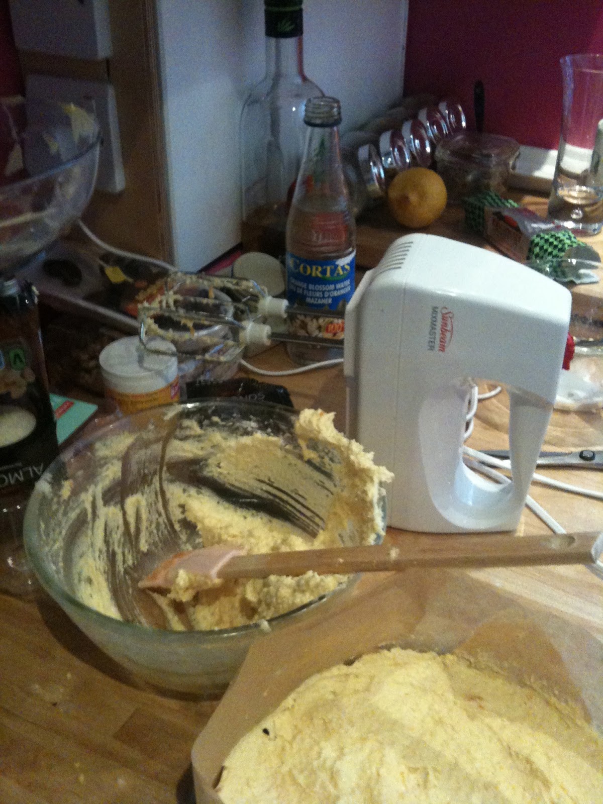 Beat butter with sugar using an electric mixer until just combined. Add eggs 1 at a time, beating well after each addition. Mix in orange-flower water and reserved zest.