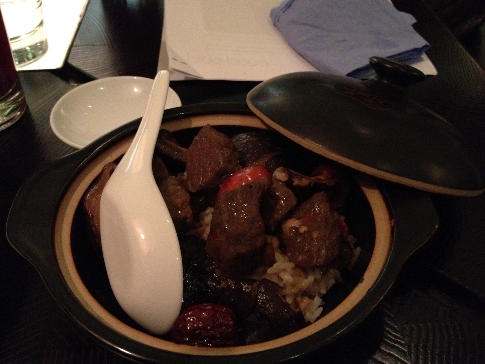 | Lamb and Chinese dates rice pot – braised lamb with small Chinese sweet dates, garlic and mild chilli sauce on jasmine rice. |