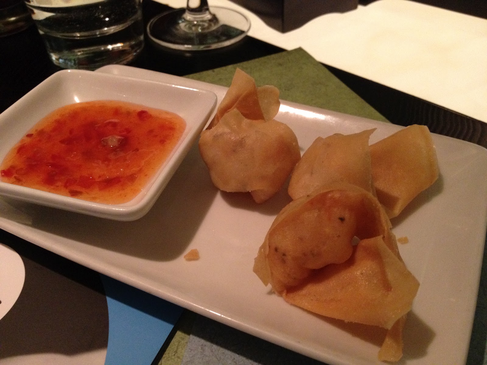 | crispy prawn wonton served with sweet chilli sauce, peppery and sweet perfect starter |