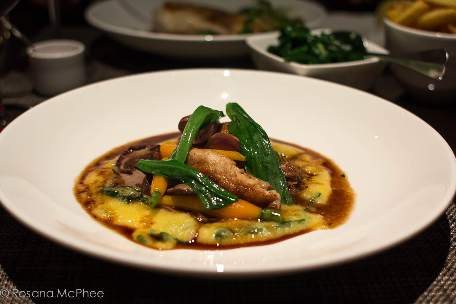 Tender and juicy loin rabbit braised shoulder, wet polenta- one of my favourite things to eat, and fresh wild garlic leaves complemented this dish exquisitely.
