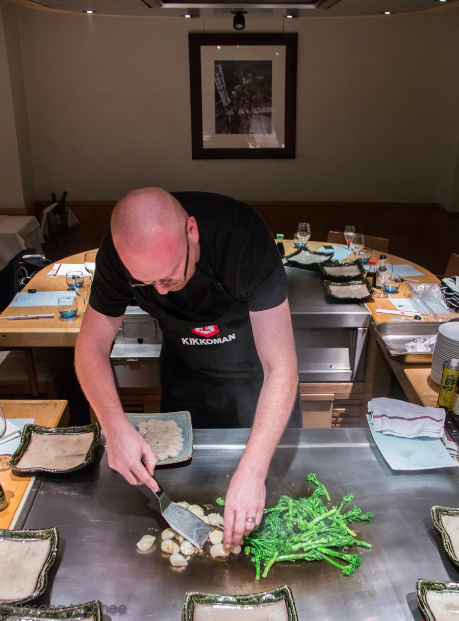 I was invited together with other food bloggers and journalists to dine at Matsuri St James (not longer in business). The restaurant is located in Mayfair and the menu is a combination of traditional and modern Japanese cuisine. The restaurant was funded in 1993 by the Central Japan Railway Company and Kikkoman, our host for the evening. Kikkoman is a global premium brand of naturally brewed soy sauce, together with Simon Hulstone, head chef of the Michelin starred The Elephant in Torquay, demonstrated the versatility of Kikkoman soy sauce in his dish of caramelised scallops and broccoli served with a soy based sauce: soy, mirin, olive oil and sesame oil sauce