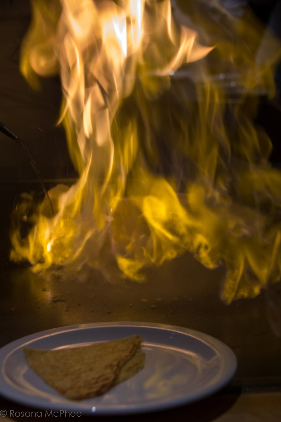 griddled pineapple pancake with fire- |