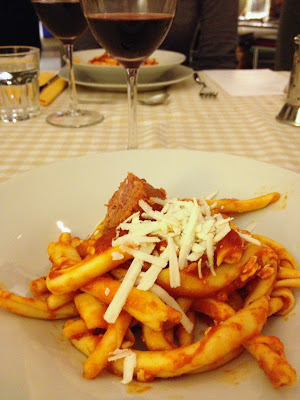 | Fusiddi al ragu di salsiccia and cacioricotta Local Cilento pasta with local sausage ragout and Cilento region goat’s cheese.  |
