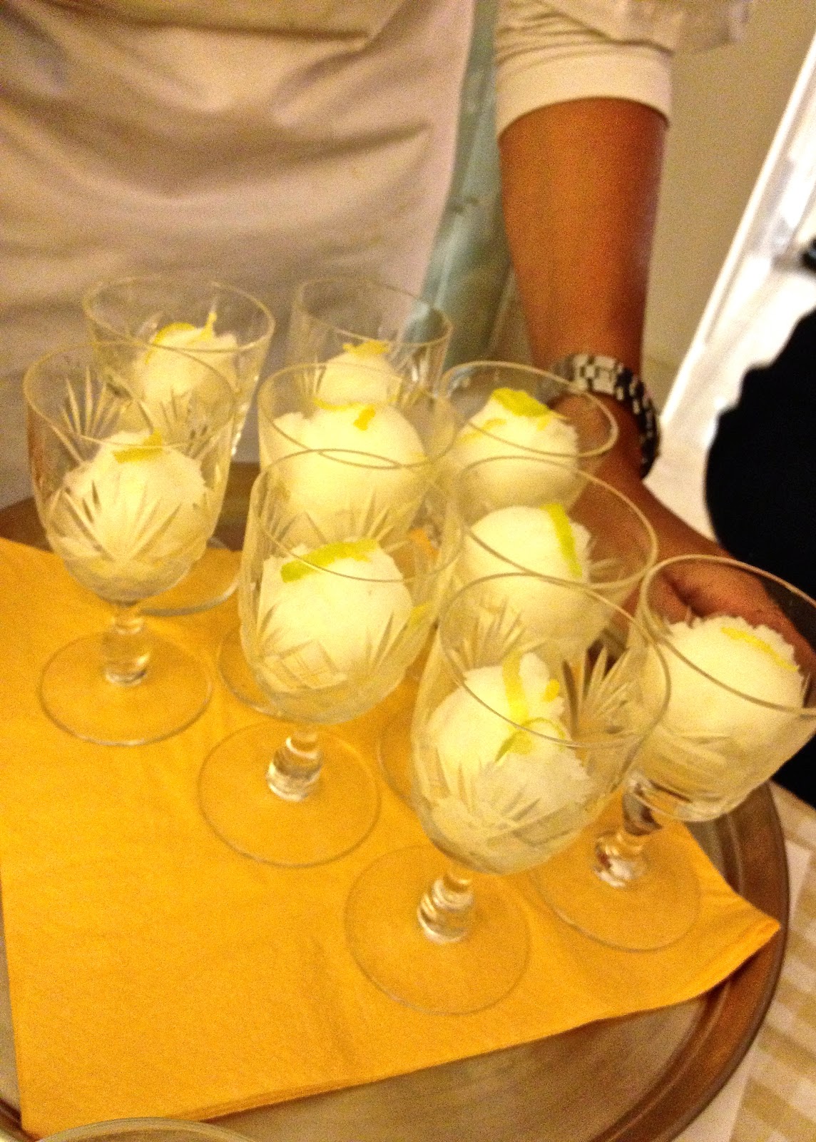 | palate cleanser: Homemade Limoncello sorbet. The Limoncello was made by Federica’s mum in Italy, using Cilento region lemons. La Gelatiera kindly made the sorbet using the homemade limoncello at their Covent Garden premises. |