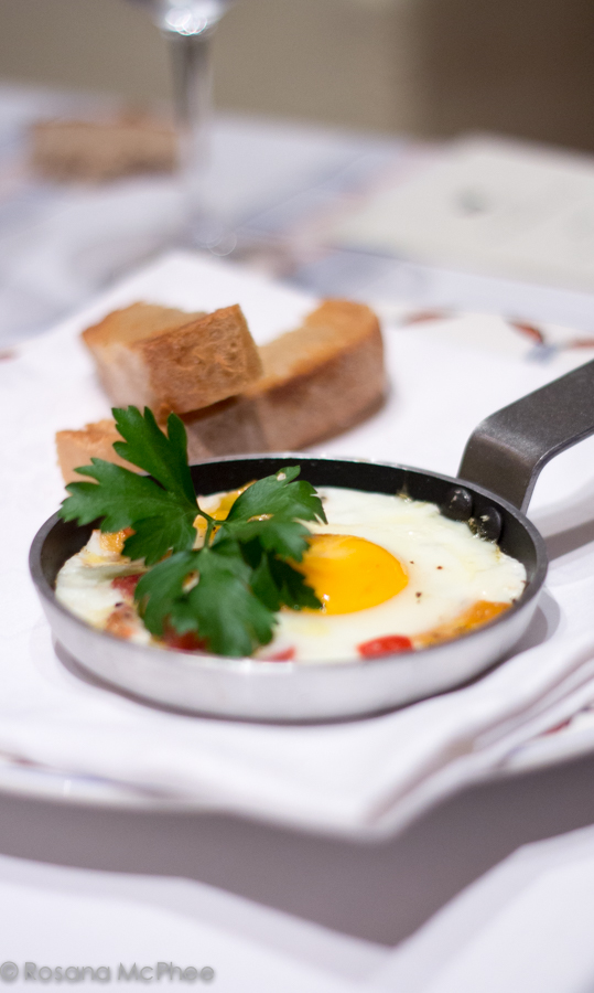 Le Clos du Roy is a charming restaurant in the center of St Emillion serving more sophisticated food, a beautiful presentation, and, at times, friendly enough service. The curb appeal is not the best; there’s a public toilet to the right when you approach the restaurant, but once inside we were guided to the first floor via a modern stairway into a fresh and airy decor room.