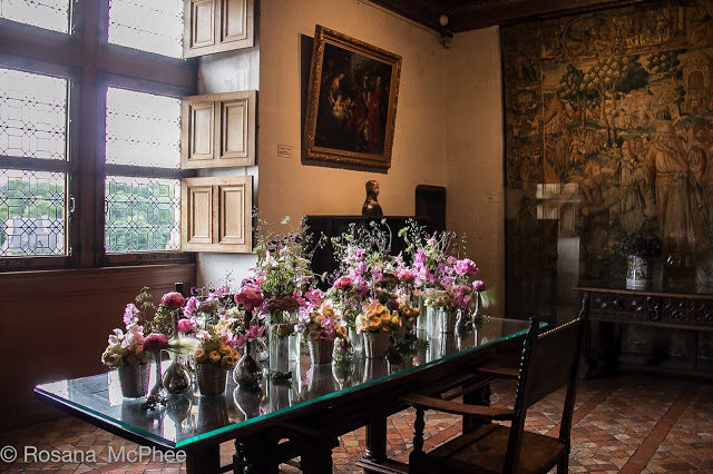 | Beautiful flower arrangements at part of the kitchen Château de Chenonceau |