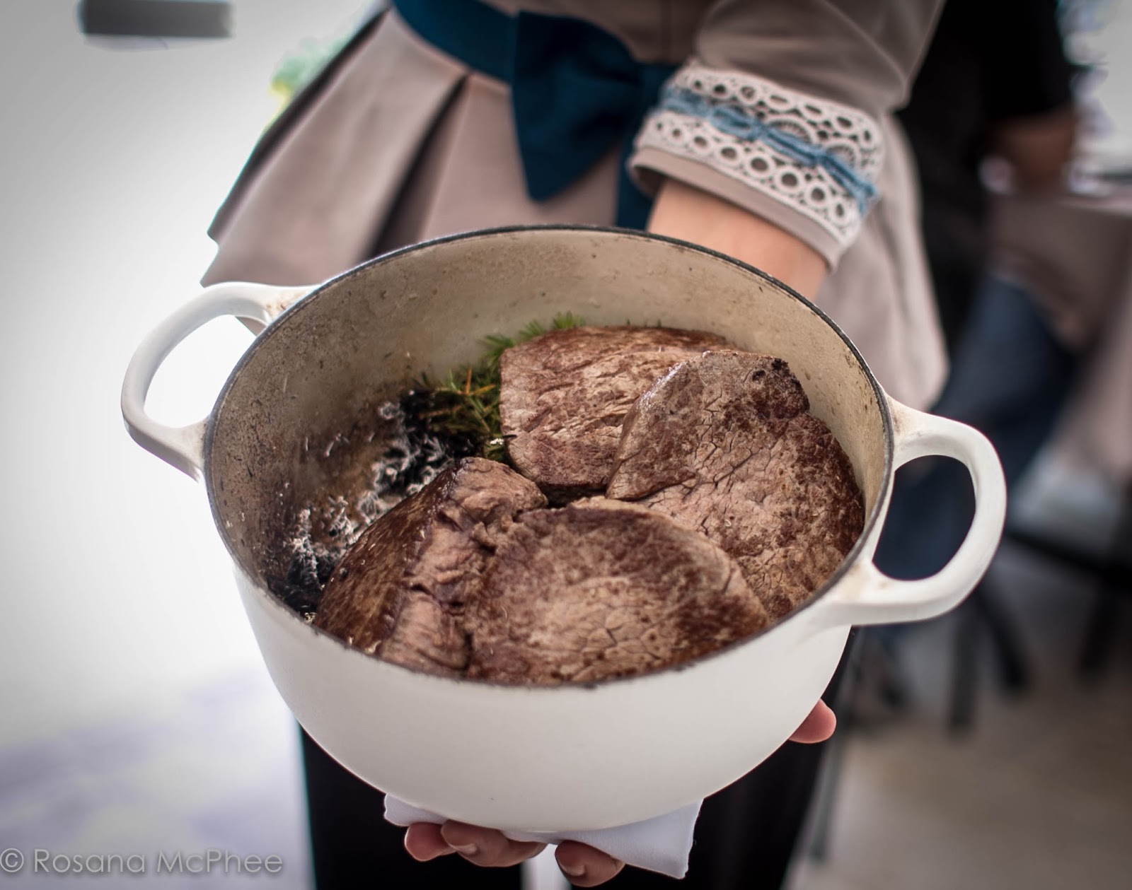 And the waitress brought the beef smoked with juniper berry in the pot |