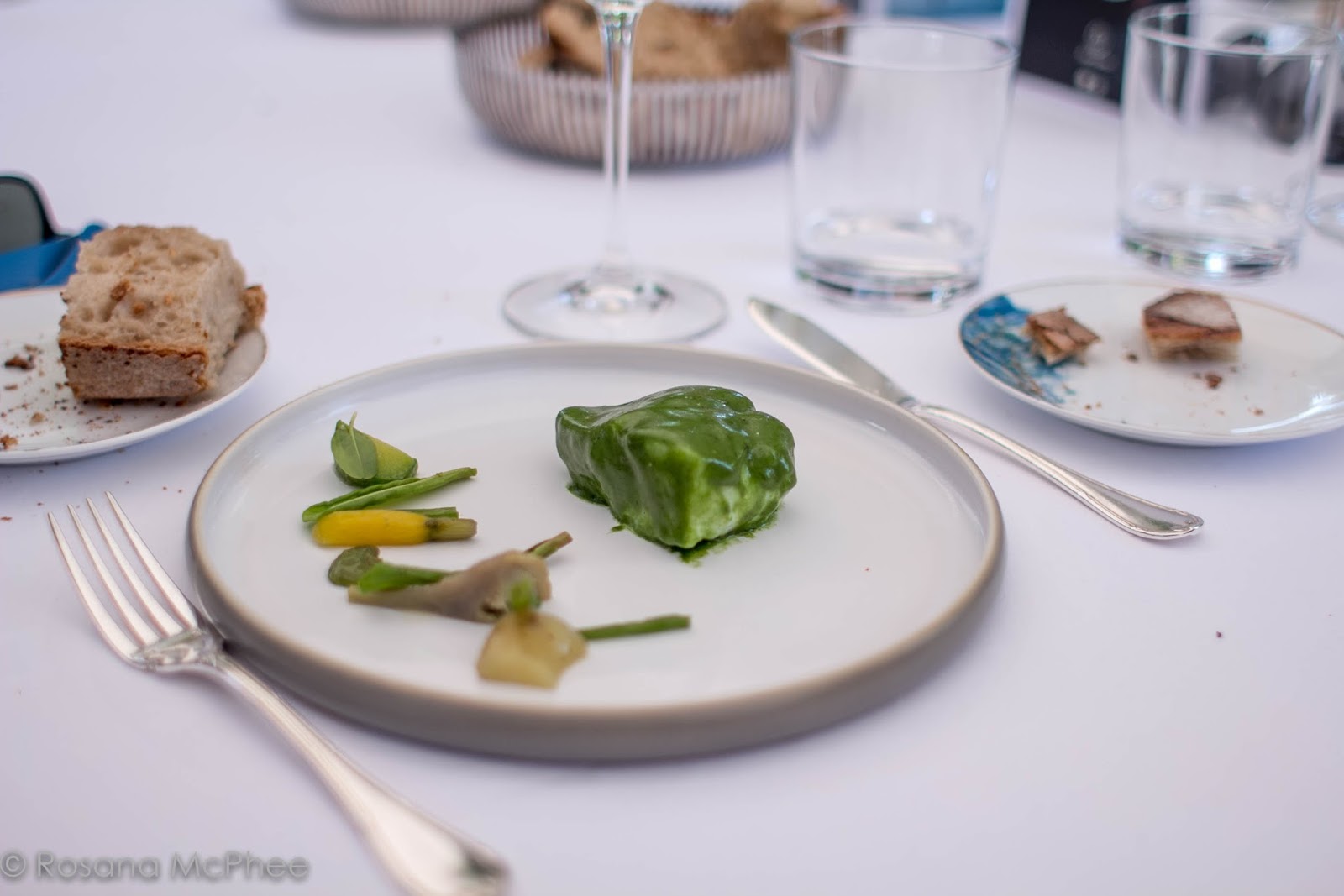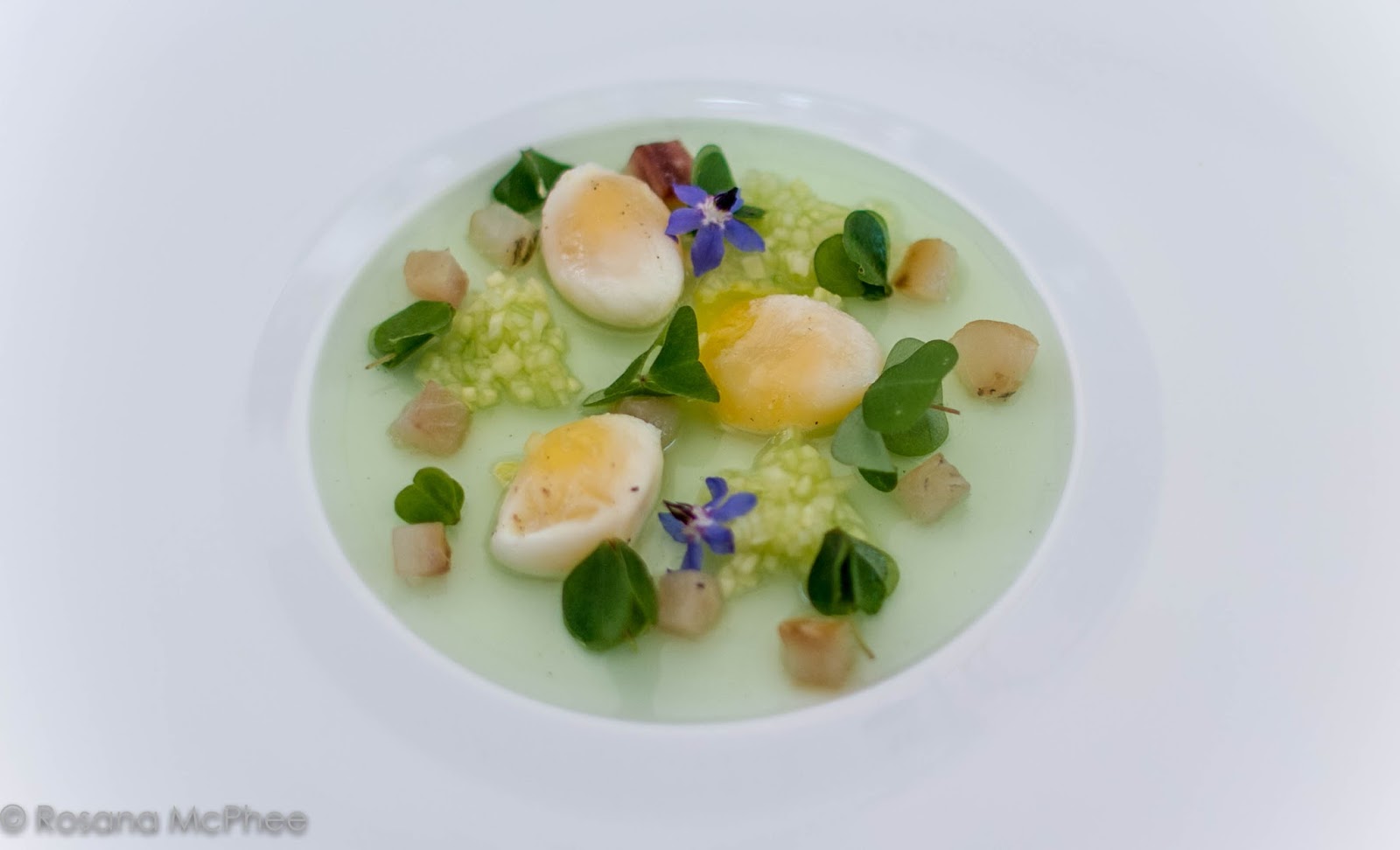 Quail’s eggs, cucumber aspic, smoked lake fish and oxalis (local wood sorrel), such a beautiful arty plate-up and the taste and lightness were stunning. |