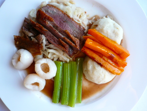 A lot of produce in one plate, worth pointing out not to over fill the plate (like me) . Attention to presentation!  Butchering the duck – better ask the butcher to cut into pieces.
