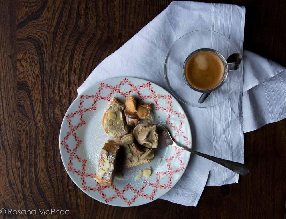 Coffee once roasted has a slightly ‘nutty’ flavour and complexity to it. One of the most famous pairings is coffee and walnut, like the coffee cake. Almonds are another classic match to coffee.  The idea to add vanilla in the recipe comes from the classic Italian affogato; vanilla ice cream topped with espresso – another match made in heaven!