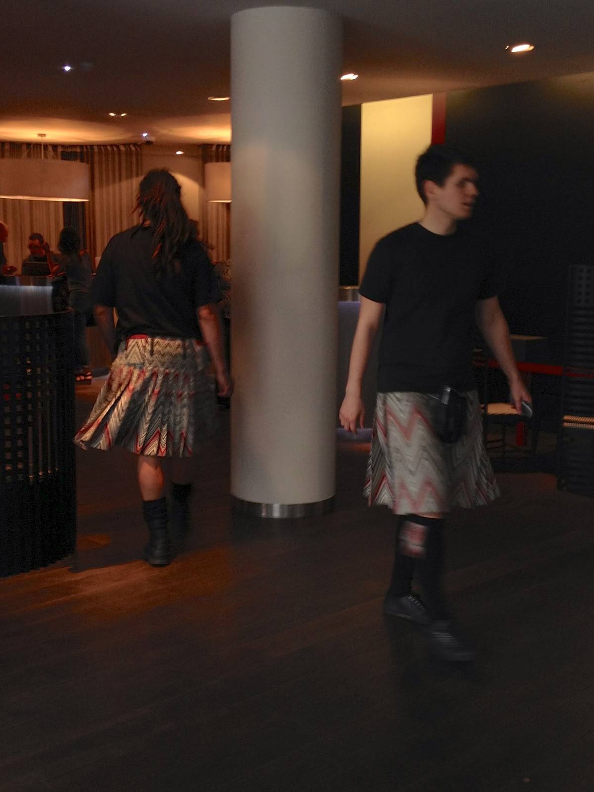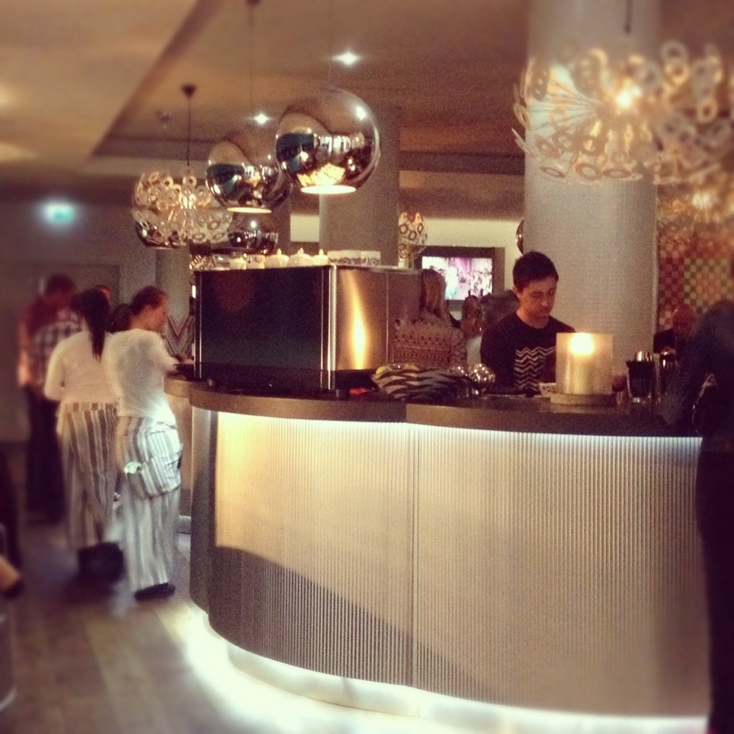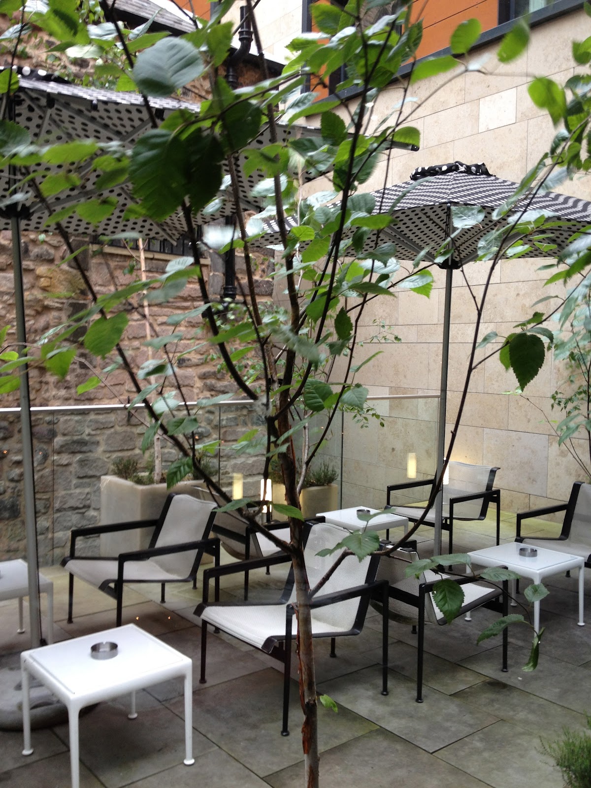 As soon as we arrived, covered in mud as it had been raining during that Saturday afternoon at the outdoor show, the staff rushed to checked us in. Probably not to dirt the impeccable and streamlined reception area. The 5-storey building has been creatively interior designed by Rosita Missoni with black, whites, browns and splashes of bold colours. The staff is all dressed head-to-toe in black & white Missoni outfits and the doormen wear bespoke Missoni patterned kilts. Once through the sliding glass doors the very slick and modern bar you are welcomes you and the reception booths are on your left. Some Charles Rennie Mackintosh furniture including his famous ladderback chair can be seen in the reception and bar area. The service is so friendly, helpful and seemless.