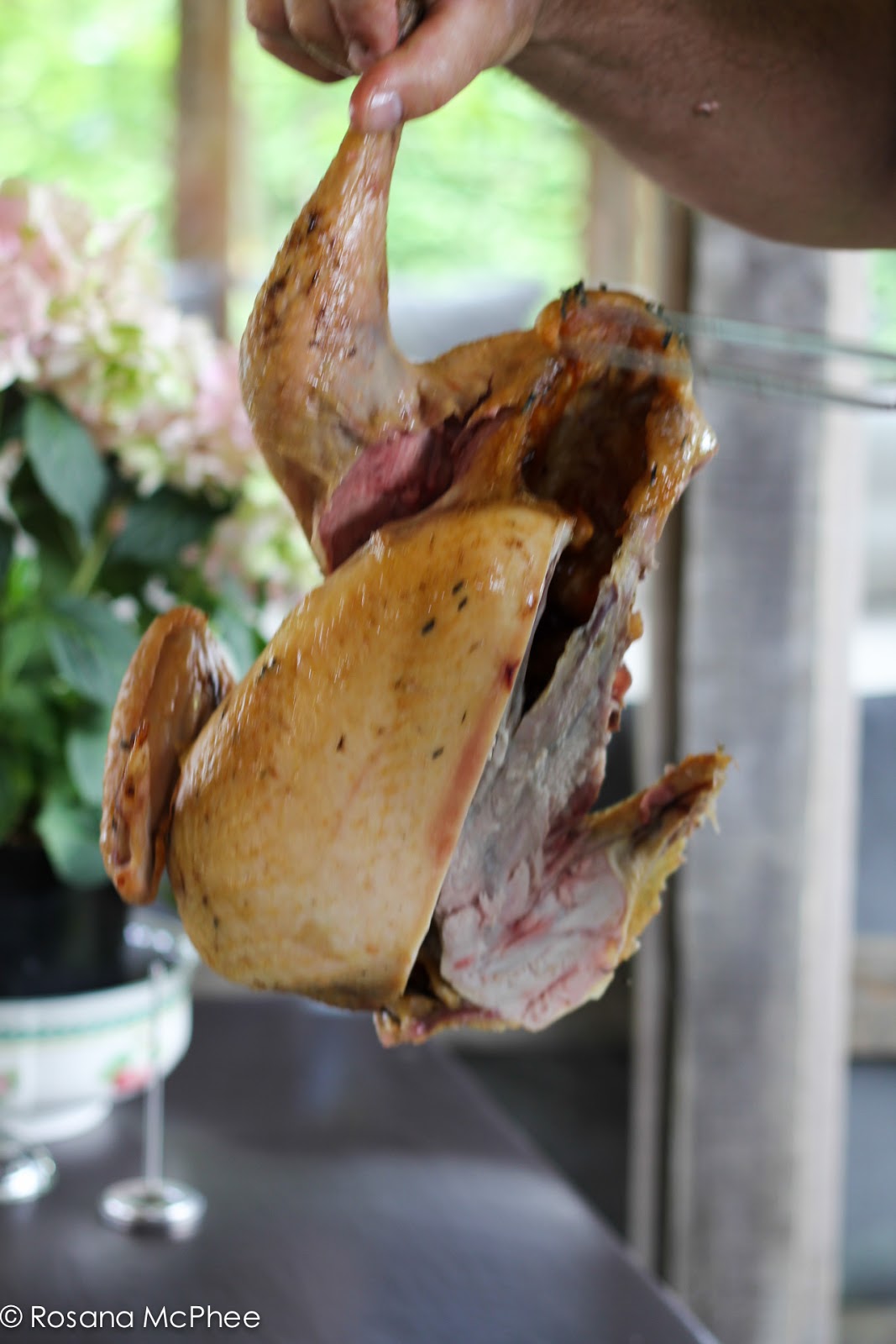 peel the skin off the breast and legs, slice the breasts and legs. Pour the piping hot turkey stock over the bird. Serve! Another great tip I learnt at the farm was how to make skin turkey crackling by simply placing the turkey skin in a tray under the heat for 15 mins to crisp up further – turkey crackling – who knew? It’s delicious.