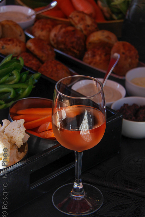 consisting of sliced or whole raw vegetables which are dipped in different sauces and Rose wine from the region.
