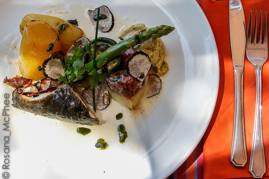 Turbot, asparagus and truffles at Le Pradeau Plage |