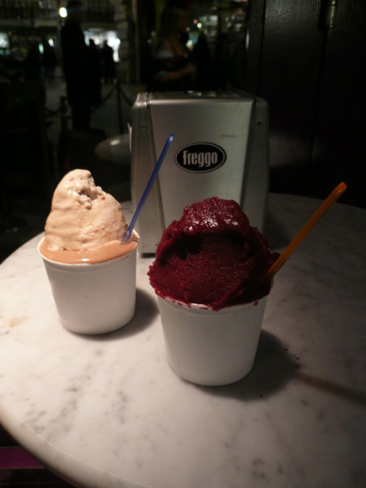 | Giovanni, the owner, at the back – Ice cream: Zuppa Inglese & Flan di Riso |