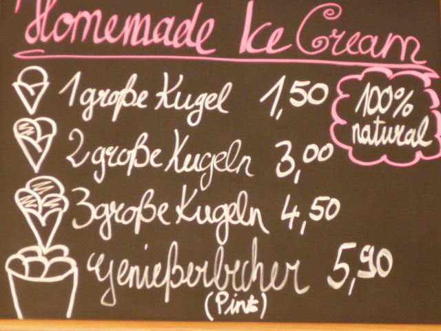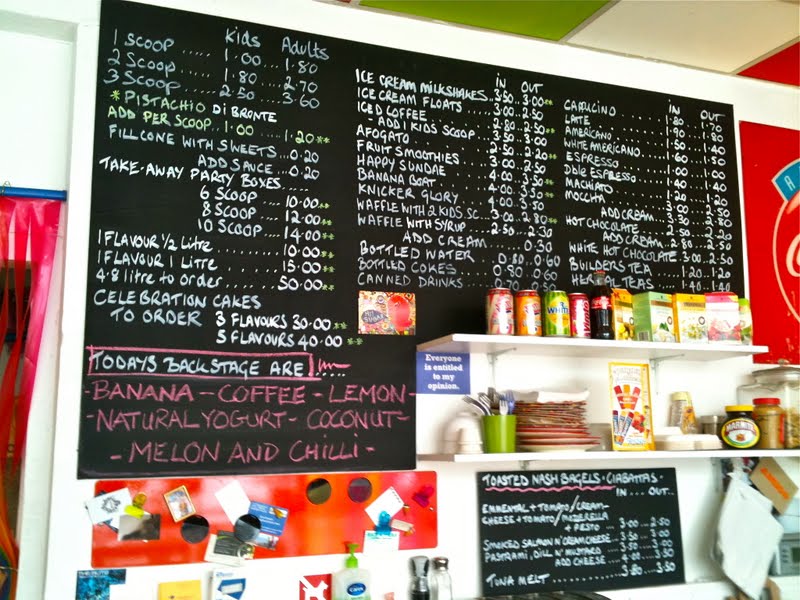 Italian gluten-free ice-creams made in the premises. They also have diary free flavours like the caramel toffee with rice milk. The cones are gluten, diary and wheat-free too. Other flavours: strawberries and prosecco, custard, banana, pistachio from Sicily, Mango etc The fruit flavours are 50% fruit. No additives.
