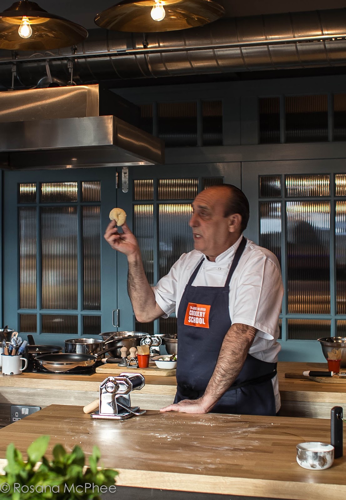 The pasta master class was presented by Gennaro Contaldo, Italian chef, restaurateur, and partner with fellow Italian chef Antonio Carluccio and their BBC Two television series Two Greedy Italians. We also had a glimpse of Jamie Oliver himself just before entering the cookery school. The event started with a super fun demo by Gennaro followed by a hands-on session of making filled pasta.