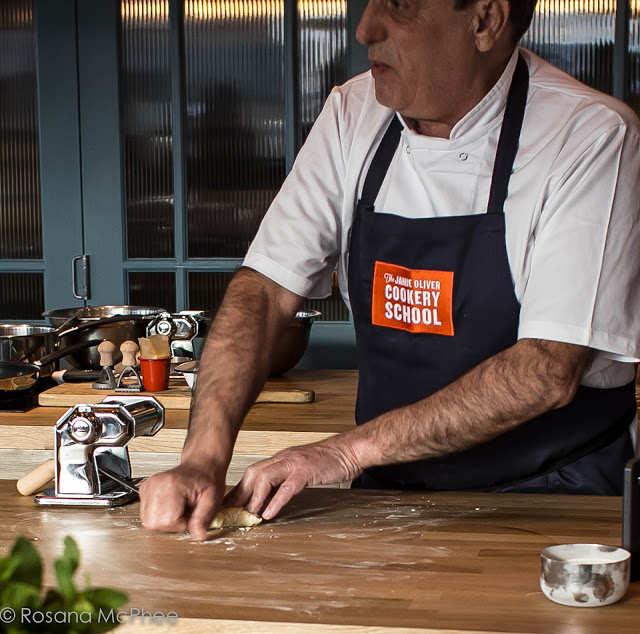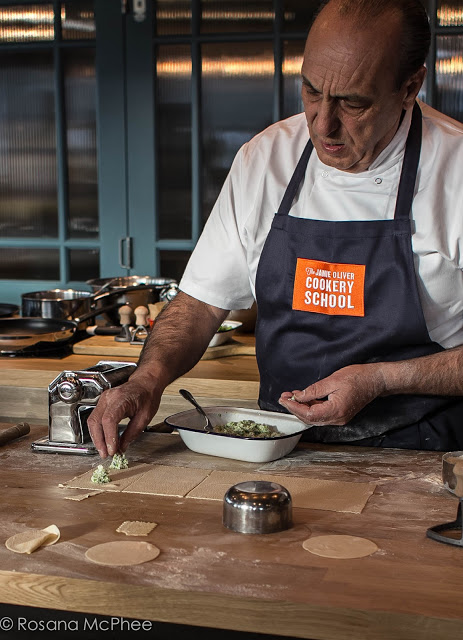 The pasta master class was presented by Gennaro Contaldo, Italian chef, restaurateur, and partner with fellow Italian chef Antonio Carluccio and their BBC Two television series Two Greedy Italians. We also had a glimpse of Jamie Oliver himself just before entering the cookery school. The event started with a super fun demo by Gennaro followed by a hands-on session of making filled pasta.