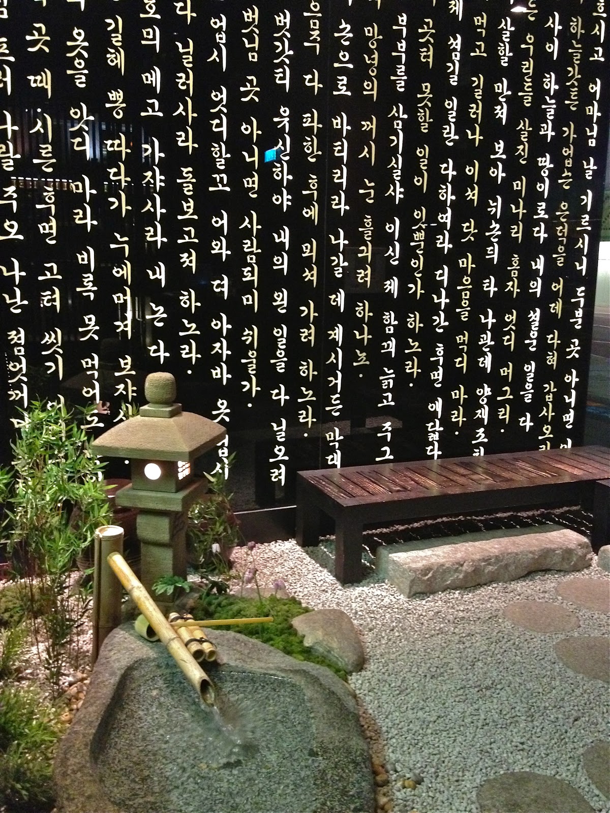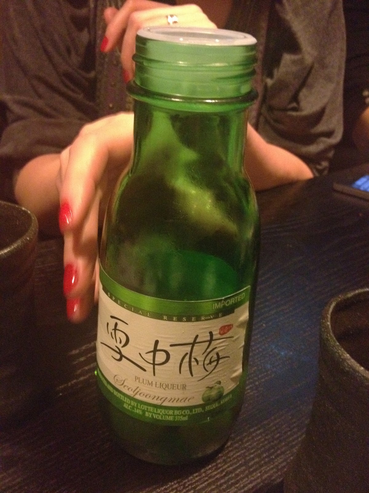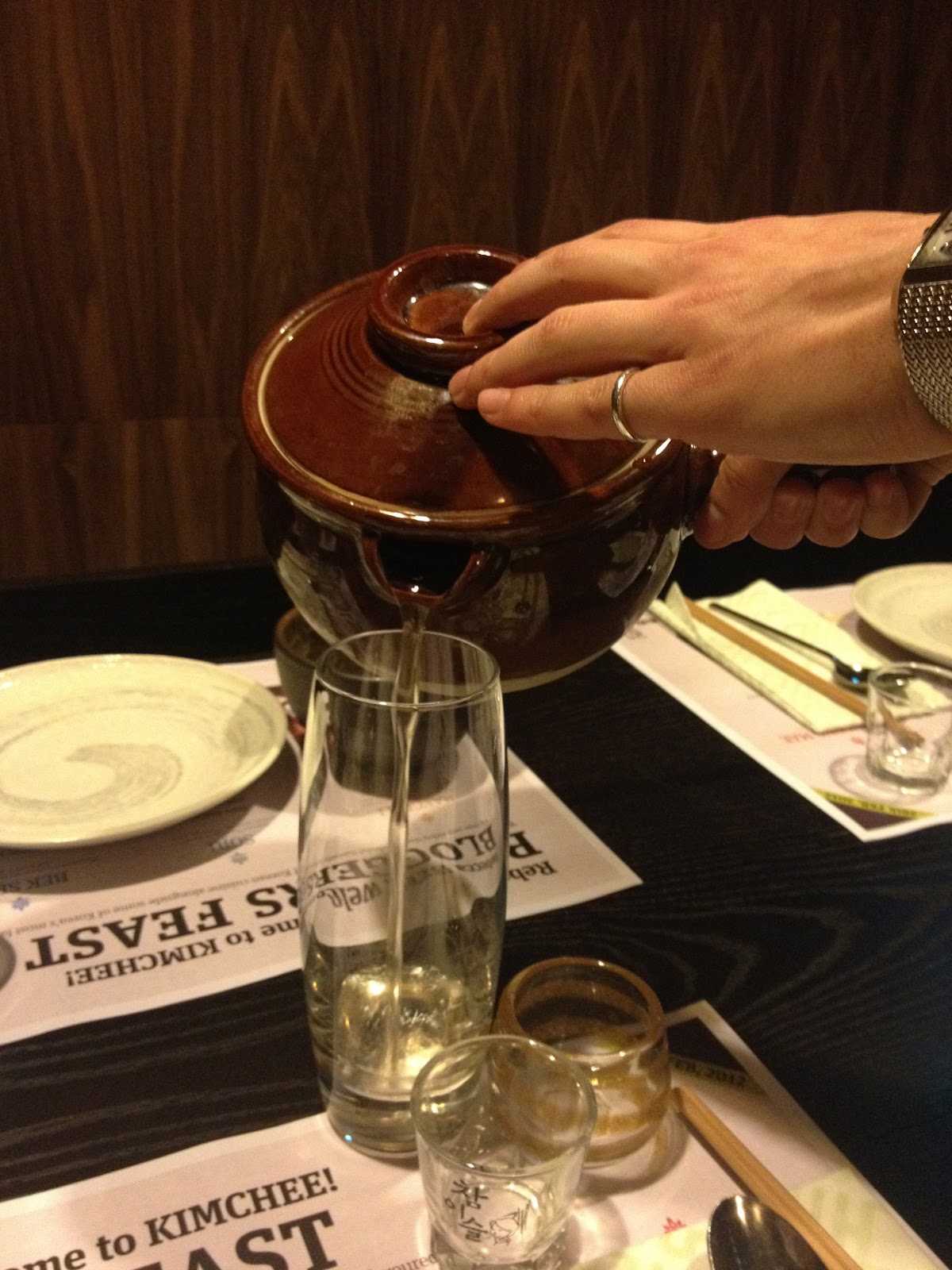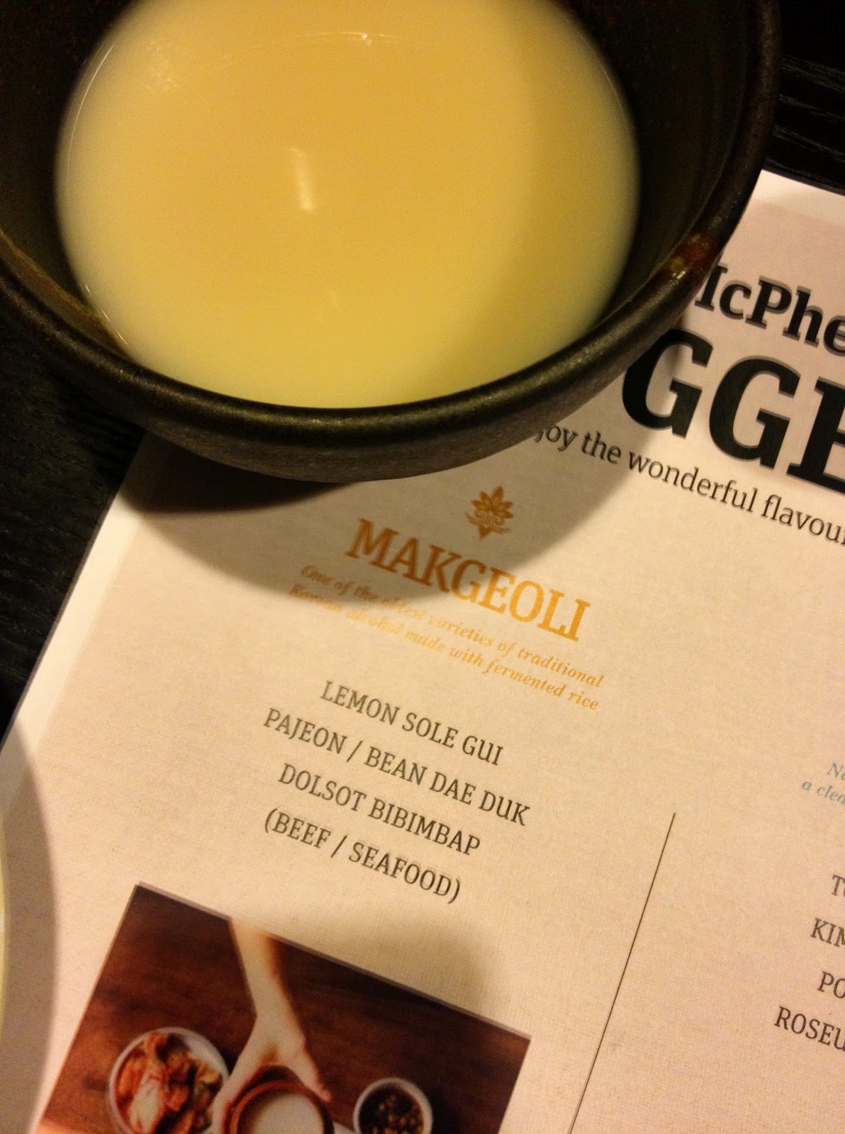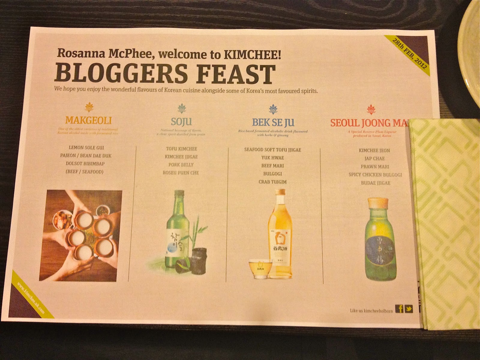 Last week’s foodie adventure took place at Kimchee, an authentic and reasonably priced Korean restaurant situated near Holborn Station in London. A group of travel, food writers and bloggers were invited to a very comprehensive tasting menu at Kimchee. Sat at our table were our host Anokhee Karia, Marketing manager and Winnie Paek, a lovely Korean lady, who happens to work at Kimchee’s HQ too. She also educated us on Korean food and customs through out the meal. It was very interesting to hear how Koreans introduce themselves by stating their name and their age, the admirable respect towards an older person and how drinking and serving practices are an important part of Korean’s etiquette. Koreans offer glasses of liquor to each other rather than pouring their own. Koreans have their own set of social rules and they follow them closely. Korean food is served to be shared and usually served in communal tables. Erika, from Kimchee, designed our personalised place mats.
