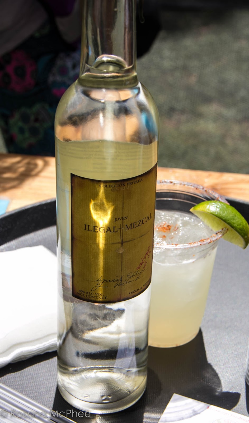 Ilegal Joven Mezcal, fresh lime juice, agave nectar, fresh pink