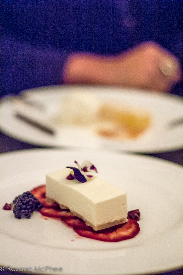 I usually order ice cream, cheese or chocolate (in that order) from the dessert menu. However, this time I decided to go for the fruit-dessert option, it’s not the healthy option, no! It was a light Calvados Mousse that contrasted exceptionally well with the apple and blackberry carpaccio. It looks pretty too. I tried the pineapple and ice cream too. It was seriously delicious.