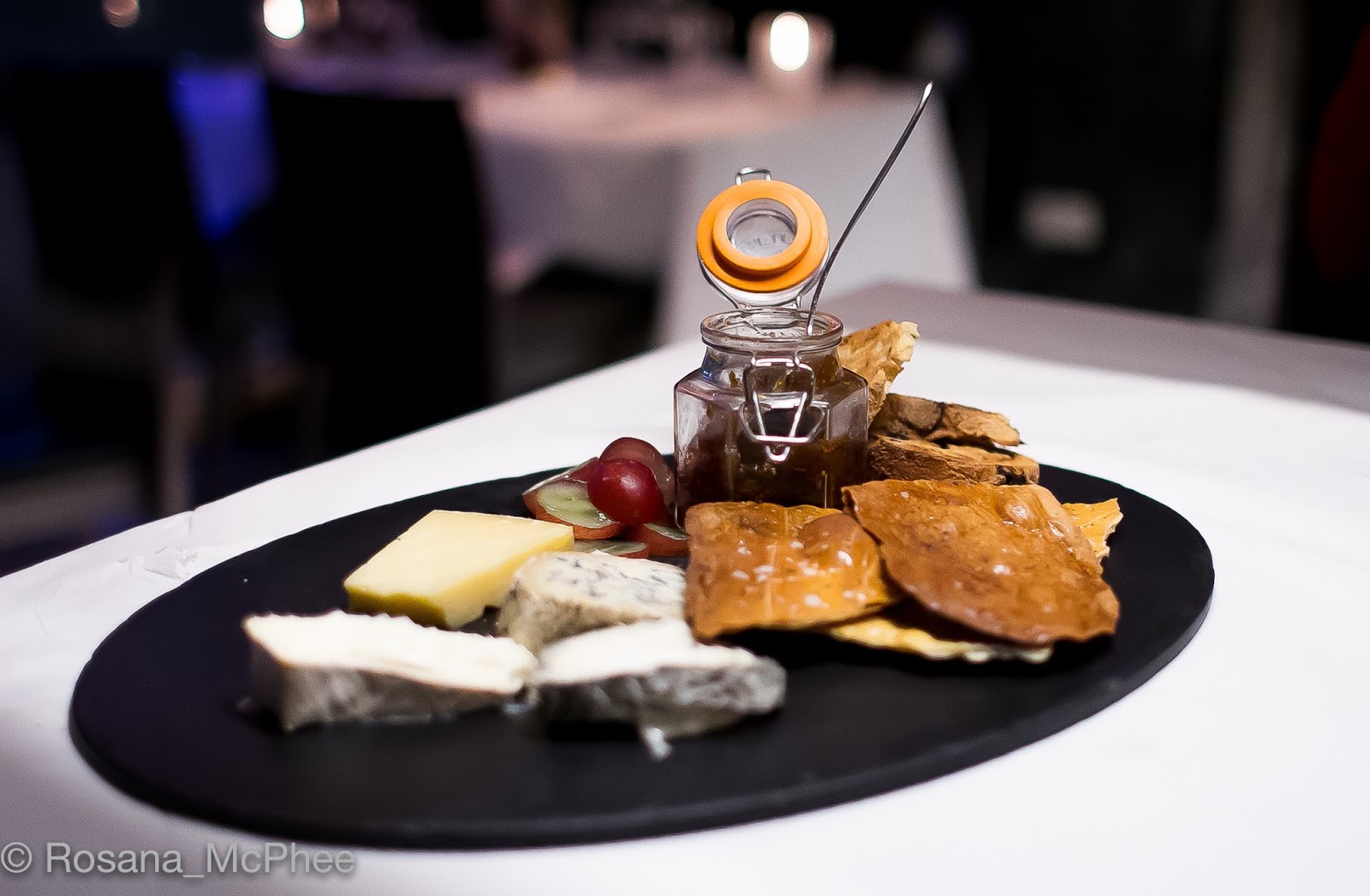 Slate with Fruit Chutney, Water Crackers and Grapes – love cheeses and