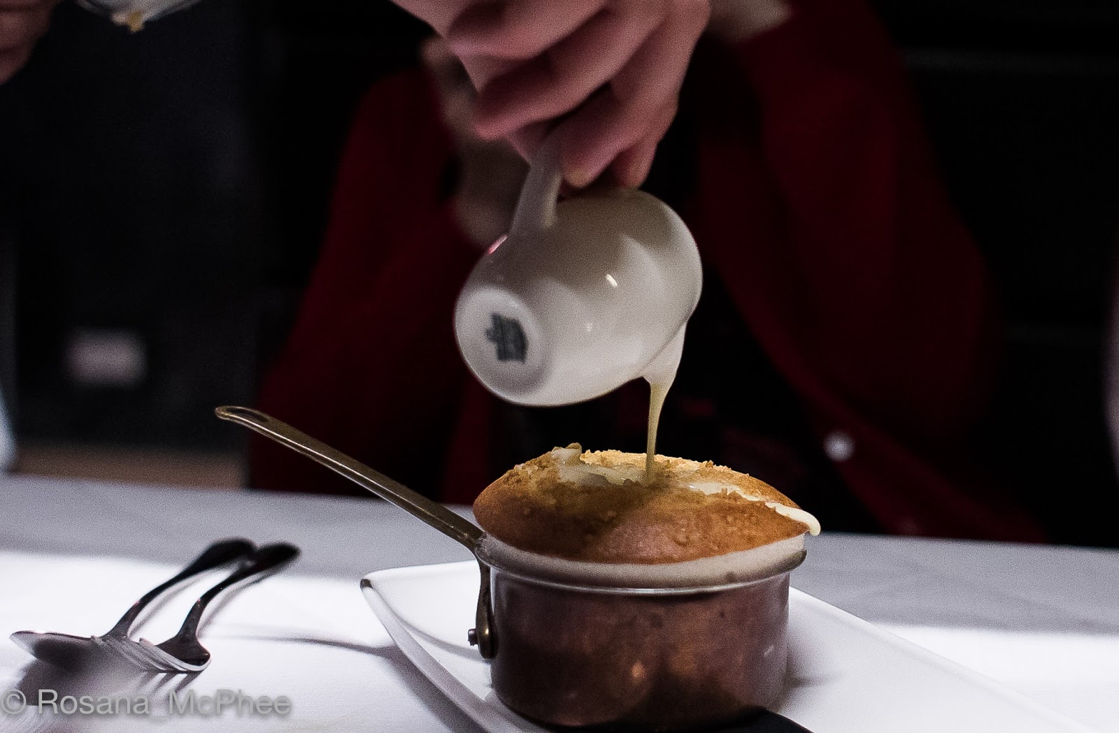Rhubarb Crumble Soufflé with Poached Rhubarb and Custard – a grand but delicate soufflé with a soft centre rhubarb pieces and the silky custard was rather delectable. Highly recommended!