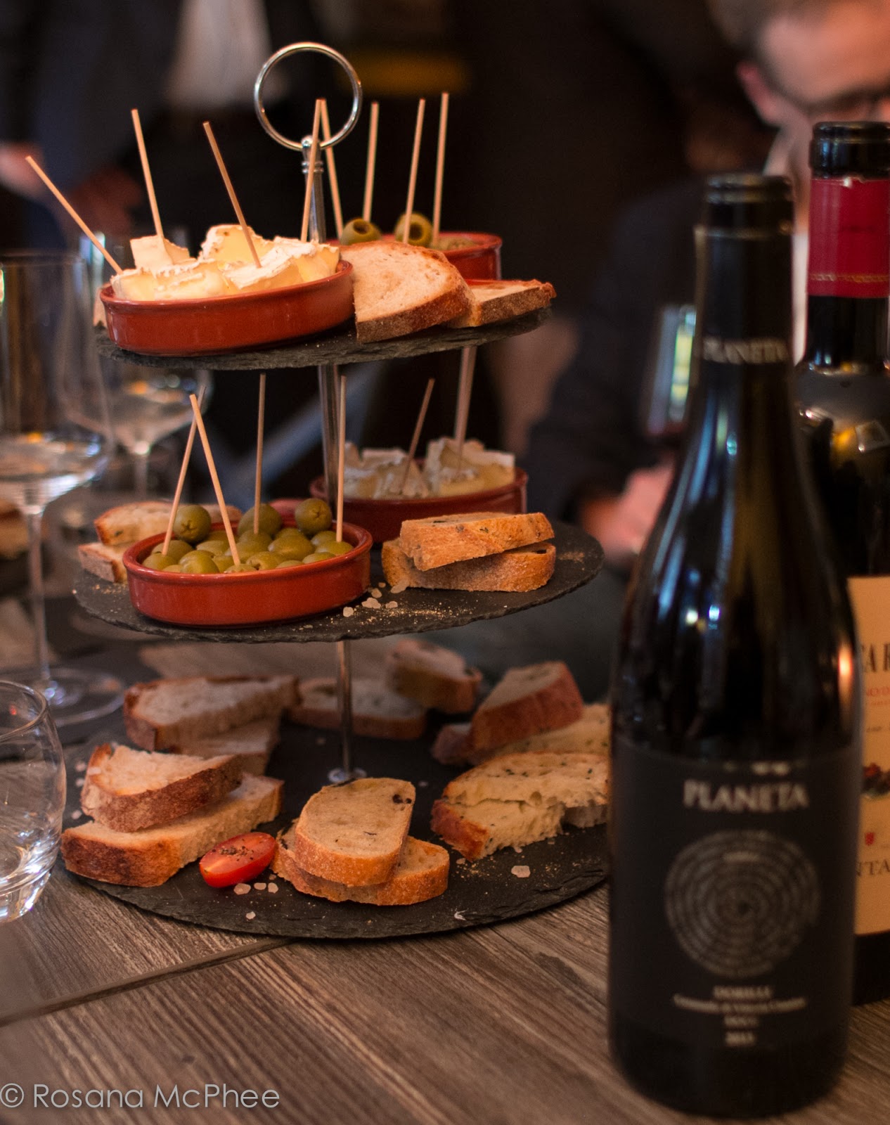 and Champagne, are served by the glass with platters of cheese, olives,