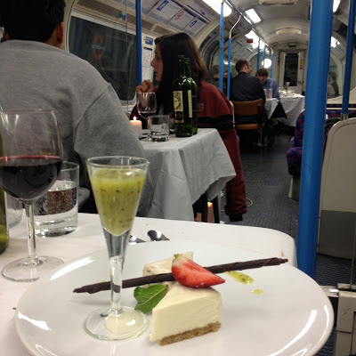 At the end of 2011 I decided to try supperclubs in and around Brixton where I live.  I searched online and found a few, some are very well known others not so much. I found one that caught my attention, the Basement Galley. It was near Christmas and they weren’t hosting any supperclubs till January 2012. However, by April 2012 Basement Galley were no more. Alex Cooper, the chef had decided to pursue other gastronomic enterprises. I was sad that I never had the change to try it. I always checked them out online for updates. Well, my constant checking paid off when I saw that they were hosting a special supperclub in a tube carriage on the Victoria Line in April 2013. First person I thought to invite to come with me was my good friend Mex, aka @anniemole, who has been blogging about the tube for the last 10 years. Perfect companion!