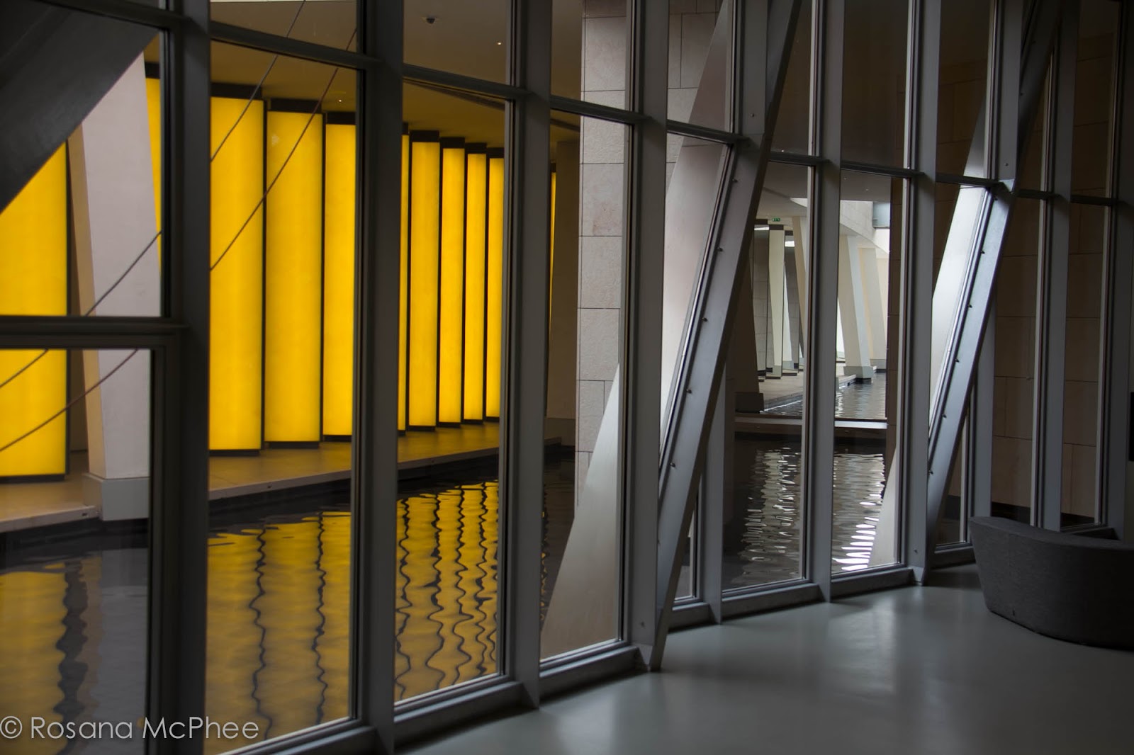 building itself is a work of art with geometric lines and curves