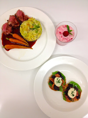 A Gaelic feast from Fiona and Adrian a mix of Scottish and Welsh delights: Lamb, caramelised carrots, lovely mini pancakes with salmon and beets and creamy berry cranachan