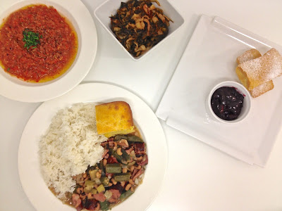 American Deep South menu. Fourth place. I particularly liked the black eyed beans with smoked pork and sausage stew which was served with rice and cornbread.