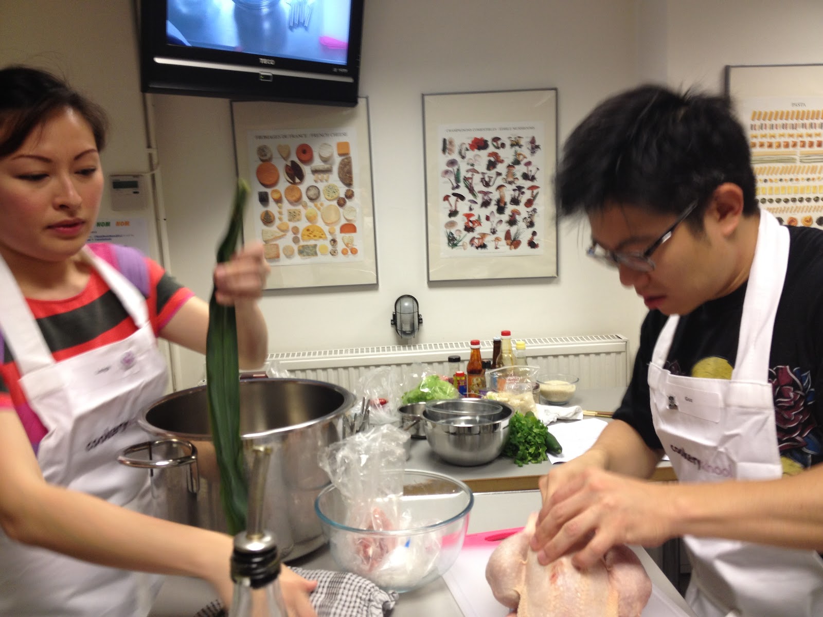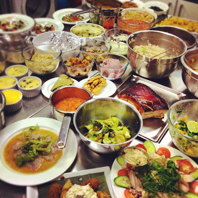 Having decided not to take part of this years competition for many reasons, I asked Annie Mole if I could come along on the day to watch, take pictures (sorry they are not that good) and blog it about as an outsider. She agreed and I arrived as the teams were coming back from their shopping trip. Rosalind, the owner and founder of Cookery School, briefed the contestants on health, safety and schedule. Everyone took place at their stations and started cooking.  It was fascinating going around all stations and seeing how each team worked together within a brief and schedule. It was interesting to see some many colourful and exotic ingredients and smells, and very distinctive attitudes to cooking.