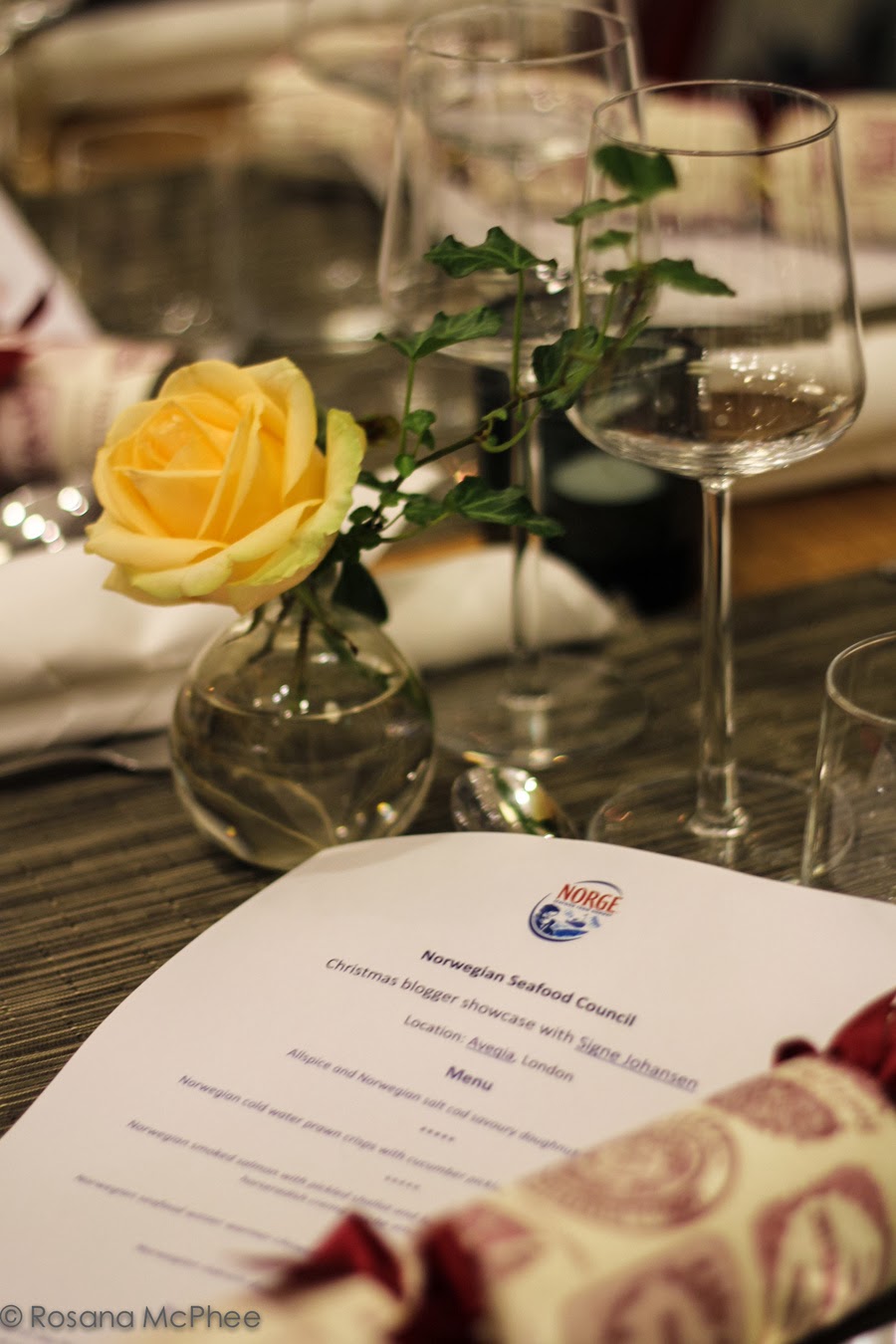 beautiful dinner table and our first canape of the evening : Norwegian cold water prawn crisps with lemon mayo and dill, the fresh tasty prawns were sweet combined with a light