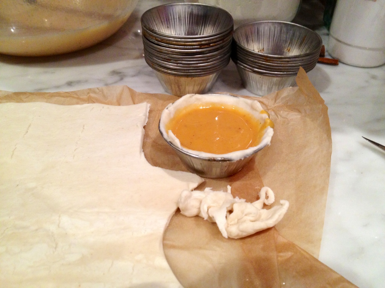 It’s October and Halloween is in a few days time, so I though to make mini pumpkin pies. This recipe is loosely based on David Leite’s recipe for Pastel de Nata.  Enjoy the Halloween celebrations this weekend.