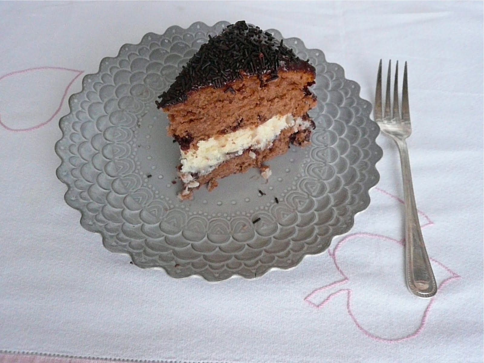 Method: Once cool, cut the cake in half, fill it with the coconut mixture, place the other half of the cake on top and  cover the whole cake with the chocolate topping.