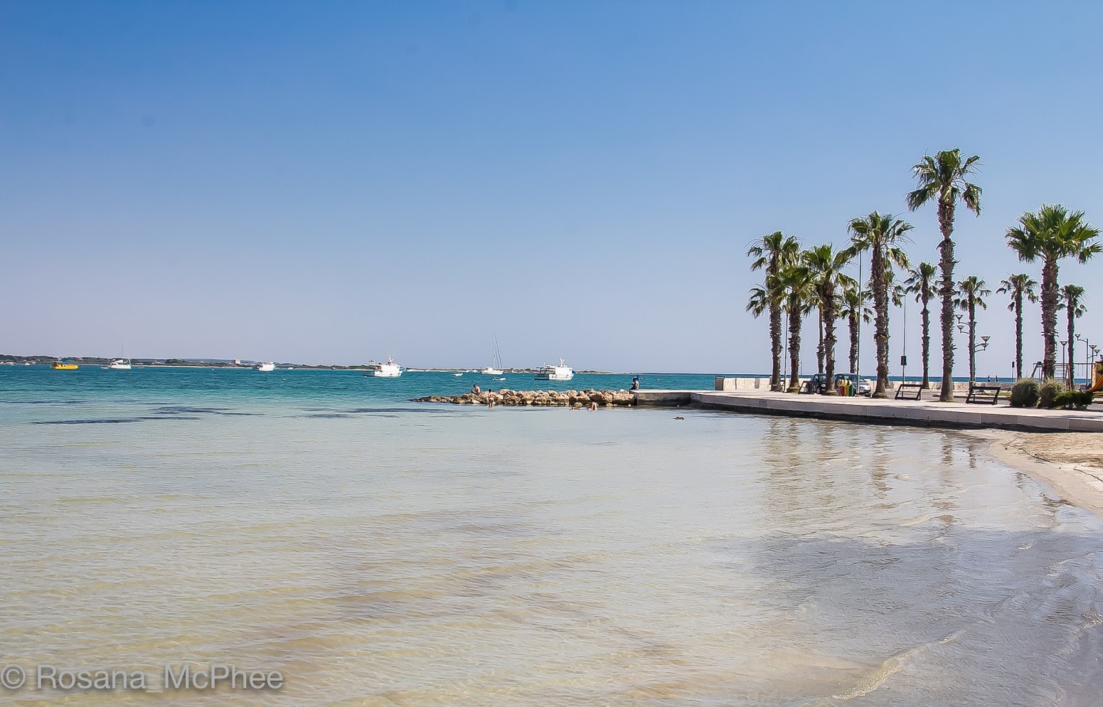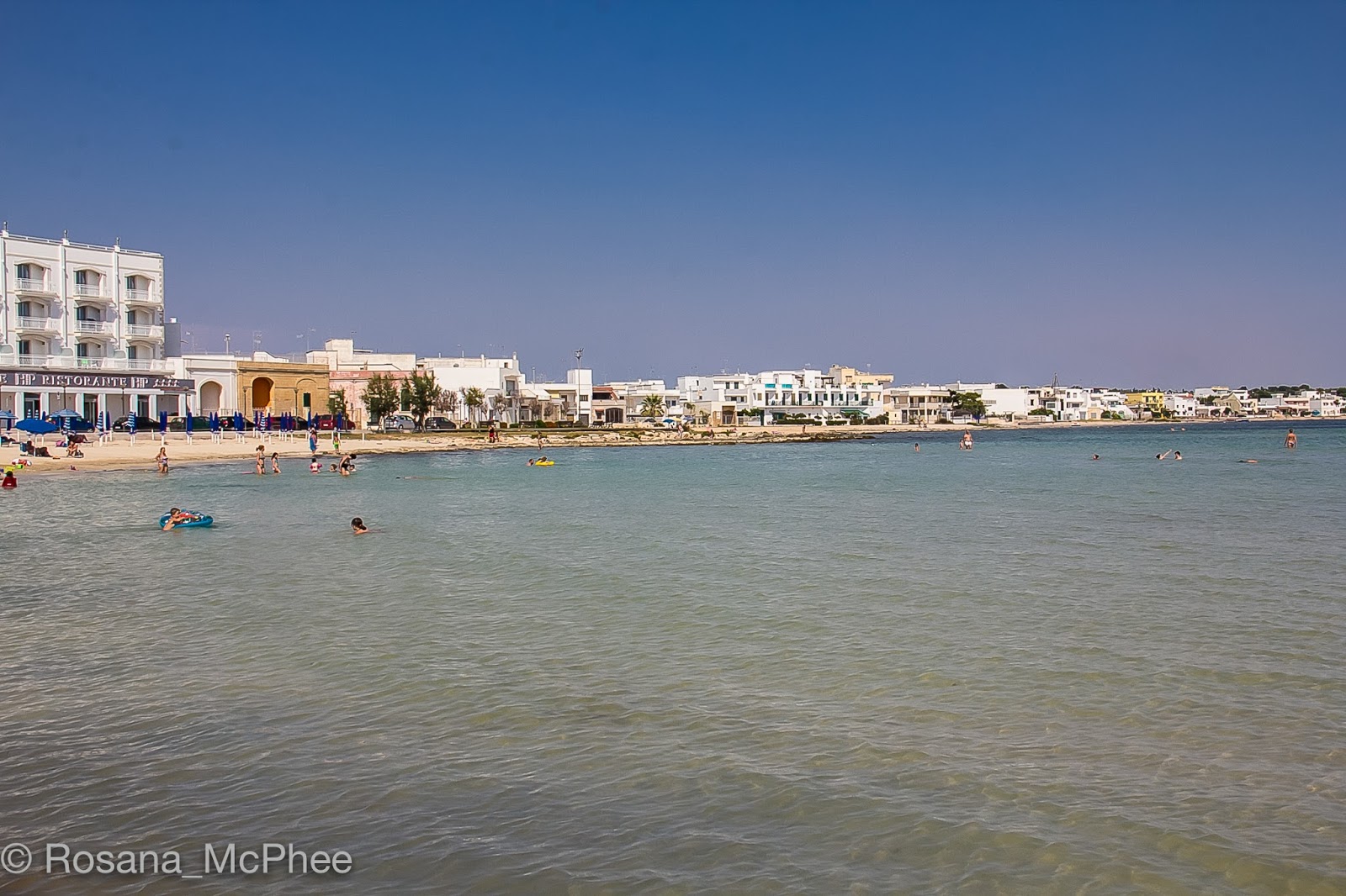 Porto Cesareo is a town and comune in the Italian province of Lecce in the Apulia region of south-east Italy. The area around Porto Cesareo is a beautiful example of “macchia shrubland”, densely growing evergreen shrubs. Tourism in Porto Cesareo is vital for the region. The shallow sandy sea remains low for tens of meters, and the transparent waters reminded us of the Caribbean sea. The coast is characterised by many capes, islets and reefs.