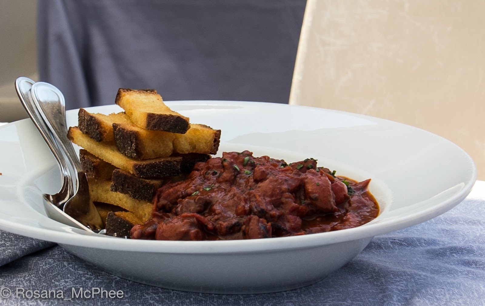 | Polpo alla pignata with tomato chilli served with fried bread – amazing! |