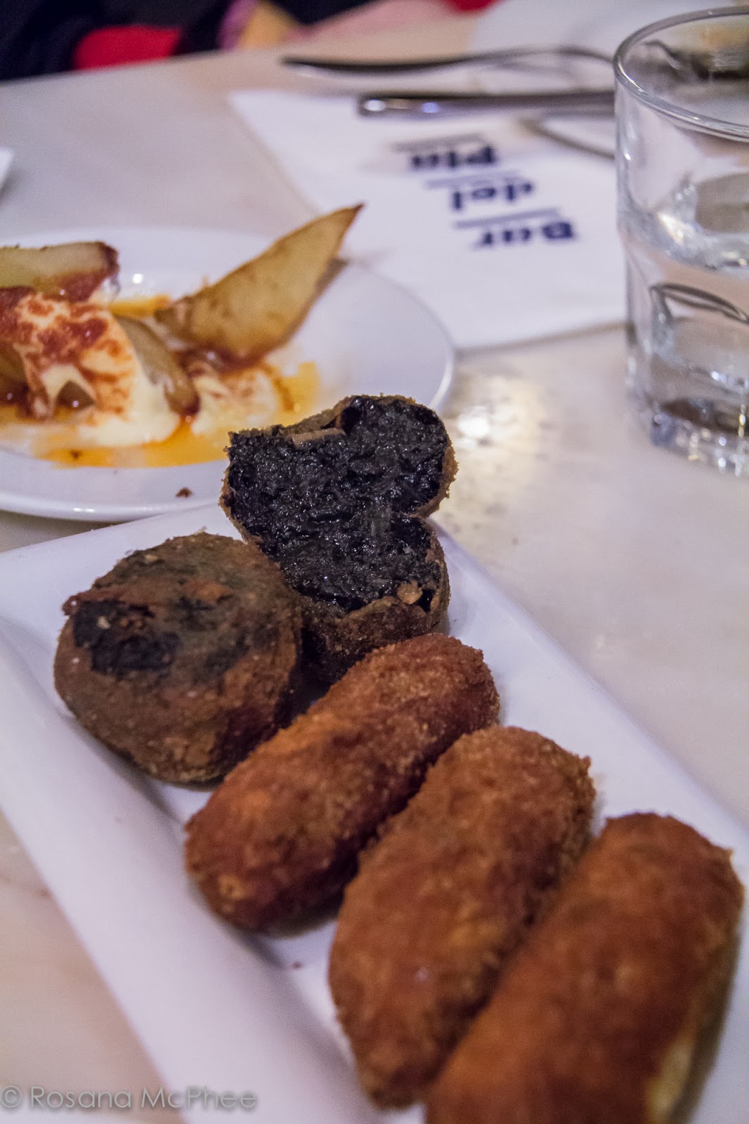 | ham and roasted pollo + squid ink croquettes – amazing! |