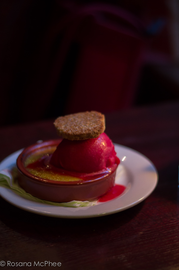Bailey’s crème brulee with raspberry sorbet: it was a revelation! Love it