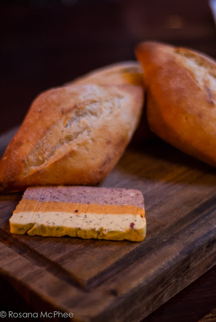 3 flavoured butter : olives, paprika and rocket served with fresh bread |