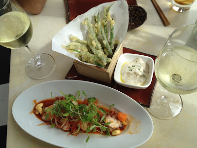 | Green bean tempura with black truffle aioli and Seafood Seviche |