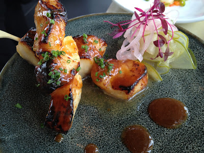 Once seated our Brazilian waiter handed over the very expensive drinks and the Brazilian/Peruvian/Japanese food menu. He also helped us choose a budget Portuguese wine bottle to accompany our meal. The wine menu is very extensive it looked like a book. It’s an all day food menu, so it doesn’t matter what time of the day you go it’s always the same price/food and no set menu or cheaper lunchtime menu. I always like to order things from a restaurant menu that are either too messy to cook at home or dishes/ingredients that are hard to find. In this case I found quite difficult as I can cook all the South American dishes in the menu. That day we were concentrating in the Samba side of SushiSamba. After taking the order, our waiter showed us around the restaurant, the wrap-around large balconies with stunning views over London, open kitchen and fiery robata grill and the Tree Bar. The place is nicely decorated with leather chairs and it’s very spacious.