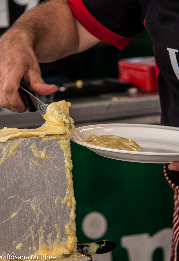 Raclette : Swiss dish based on heating the cheese and scraping off (racler)